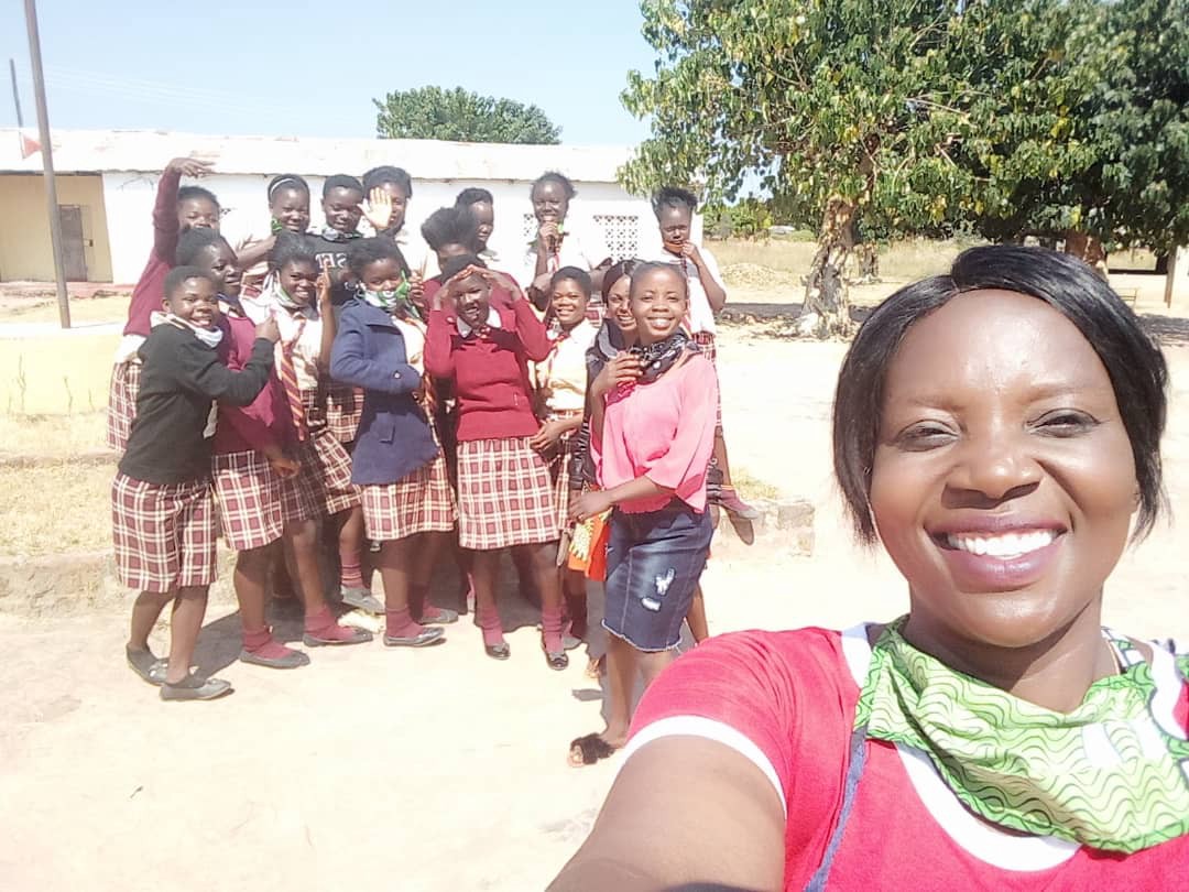 Our Teacher Mentor Marjory Kunda took this selfie with me (jeans skirt) and some of the girls I mentor. Photo: Marjory Kunda